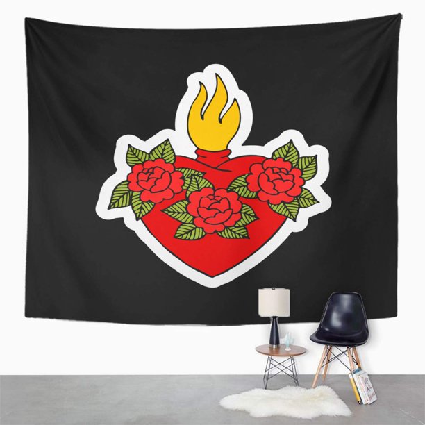 Zealgned American Sacred Heart Traditional Tattoo Flash Badge Beautiful Beauty Wall Art Hanging Tapestry Home Decor For Living Room Bedroom Dorm 60x80 Inch Walmart Com Walmart Com