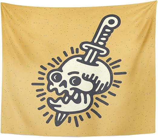 Amazon Com Tompop Tapestry Old Traditional Tattoo Flash Skull Sword And Rays Home Decor Wall Hanging For Living Room Bedroom Dorm 50x60 Inches Home Kitchen